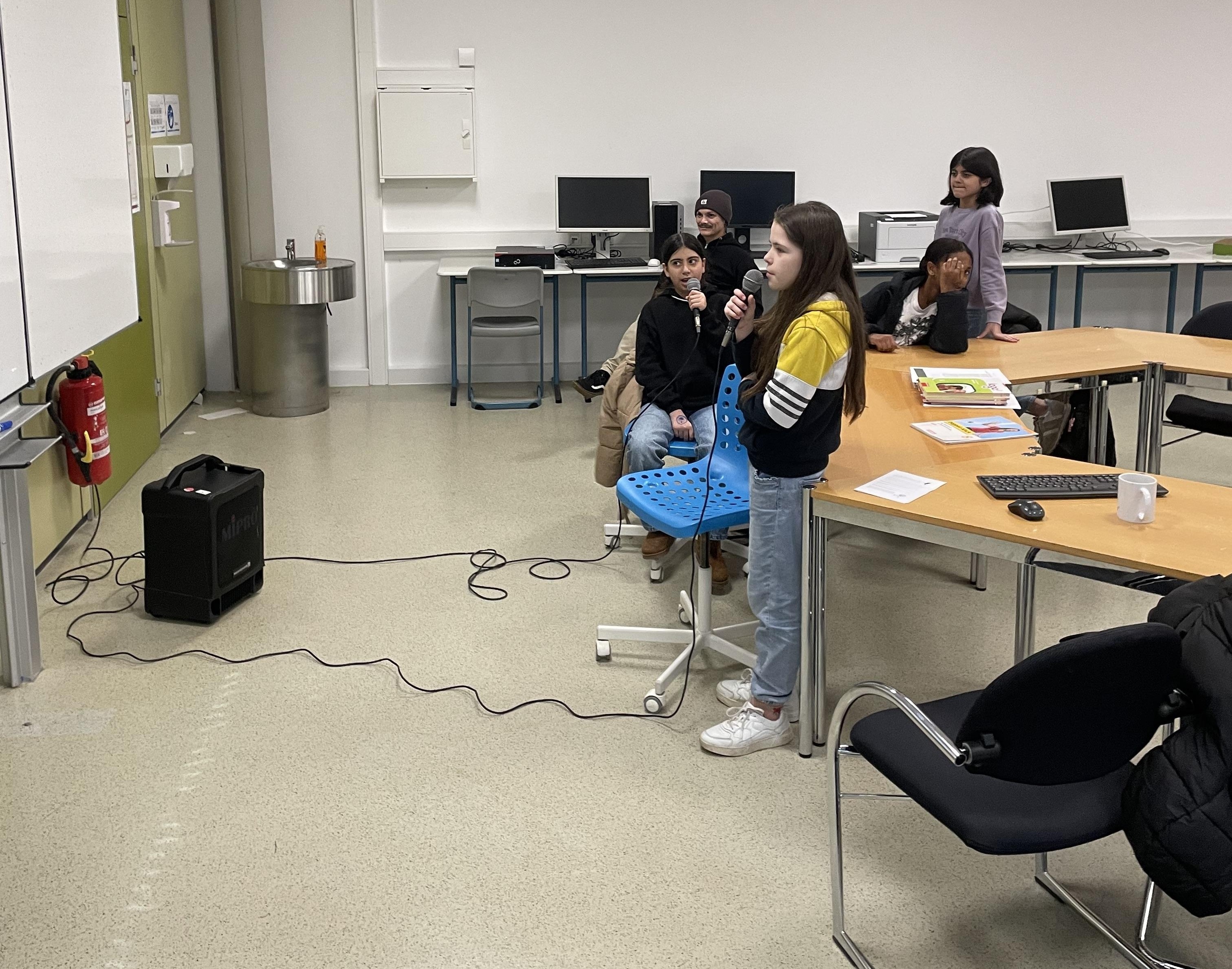 Die Schüler:innen bekommen die Gelegenheit ihre Lieblingshits in Form von Karaokeversionen unter professioneller Anleitung einzustudieren.