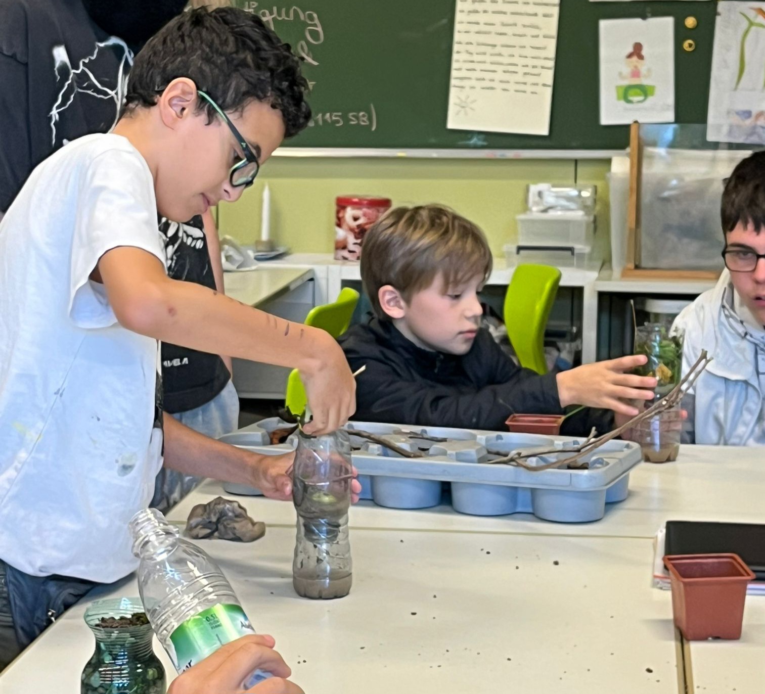 In unserer Denkwerkstatt nehmen seit dem Schuljahr 2024/ 25 fünfzehn besonders motivierte und leistungsstarke Schüler:innen der Klasse 5 und 6 sowie der Lernwerkstätten teil. Unabhängig vom regulären Unterricht arbeiten sie über einen Zeitraum von etwa zehn Wochen an spannenden, naturwissenschaftlichen Themen rund um Nachhaltigkeit.