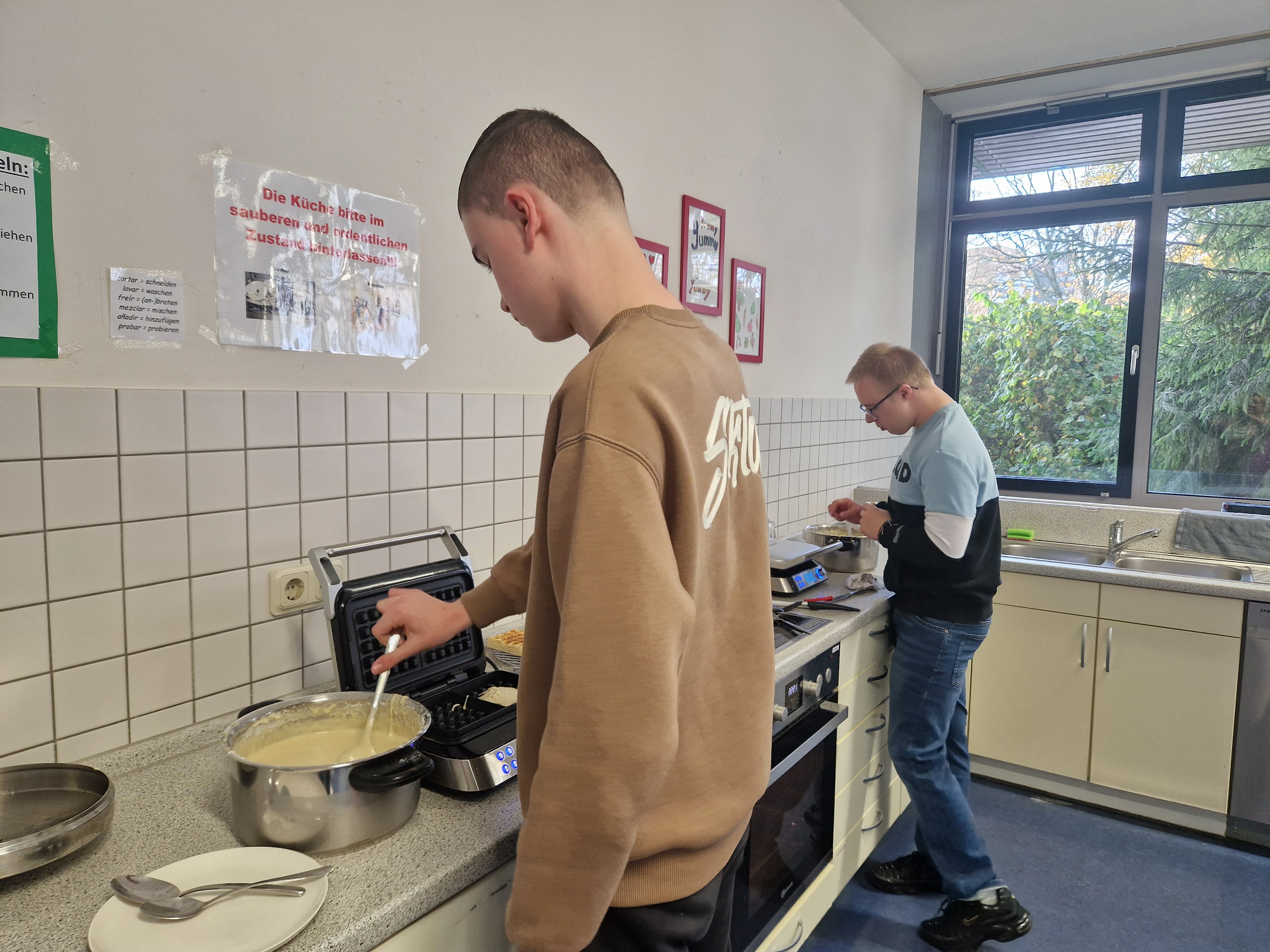 Der Fokus liegt bei diesen Schüler:innen auf der größtmöglichen Selbstständigkeit nach der Schule. Im Rahmen des Schülercafés haben sie die Möglichkeit, vor allem im Bereich Hauswirtschaft, vielfältige Fertigkeiten und Fähigkeiten zu erlernen. Das Schülercafé ist allerdings ein ganzheitliches Projekt, das noch viele verschiedene Bereiche umfasst. Die Schüler:innen planen Einkäufe, schreiben Einkaufslisten, gehen einkaufen, erlesen Rezepte und lernen die Arbeit in der Küche kennen. Auch das Bedienen und Kassieren sowie das Abrechnen der Kasse gehört zu den Aufgaben. So können die Schüler:innen für ihren weiteren Lebens- und Berufsweg Erfahrungen sammeln und wichtige Kernkompetenzen erlangen.